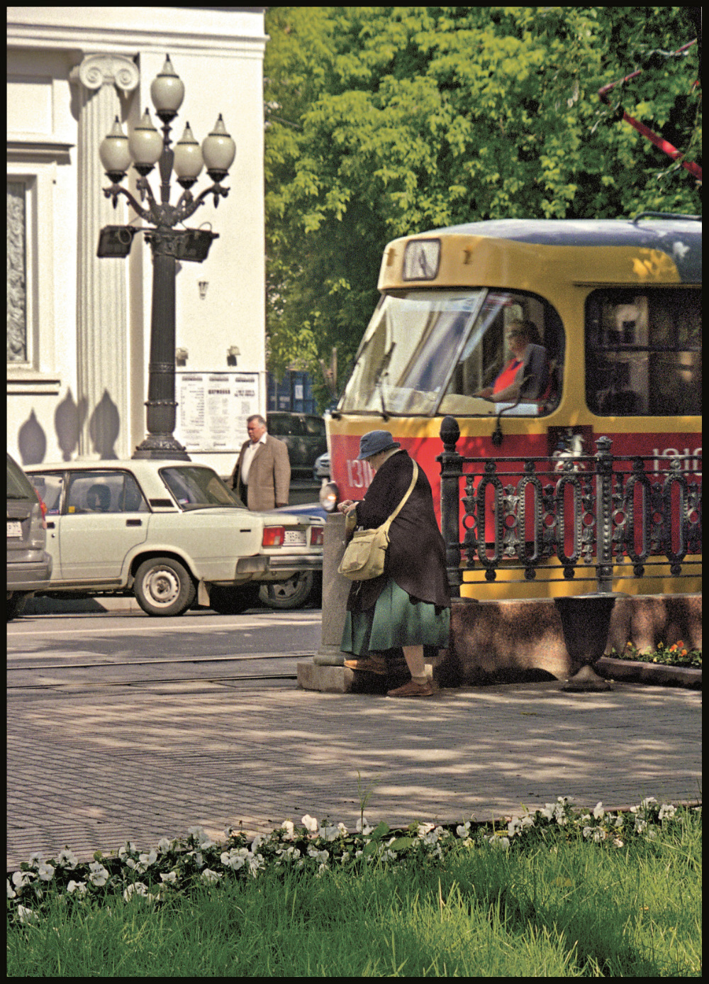 Аннушка и Берлиоз (ит.67) у трамвая «А» №1310. Зелёная юбка и чёрный пиджак, в числах 48,Чистые пруды у еврейского т-ра «Современник» (=62), рук.: Галина Волчек (17+27=44), 22/4.6.2008 (10+10=20 + с.с. =24=Николай)