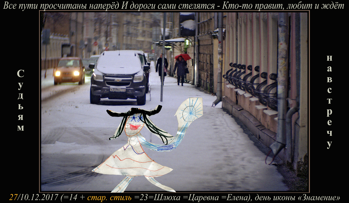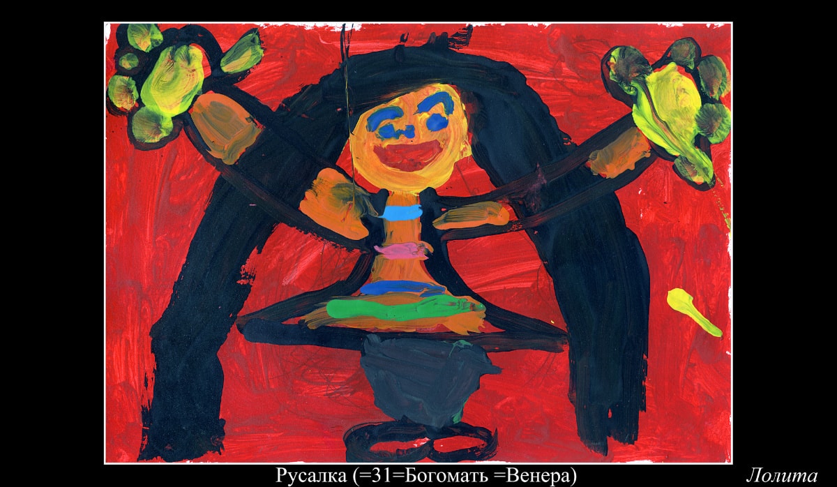Перед просмотром предлагаю внимательно ознакомиться с циклом совместных работ с младшей дочерью Лолитой, параллельно и независимо иллюстрировавшей все мы мысли и приключения, как во время написания книги, так и во время работы над фильмами и фото-циклом, большая часть которого сделана в период с августа по декабрь 2017-го. Изучив галерею, вам будет легче разобраться в символике цвета, чисел, сцен и всего окружающего. /12.12.2017/
